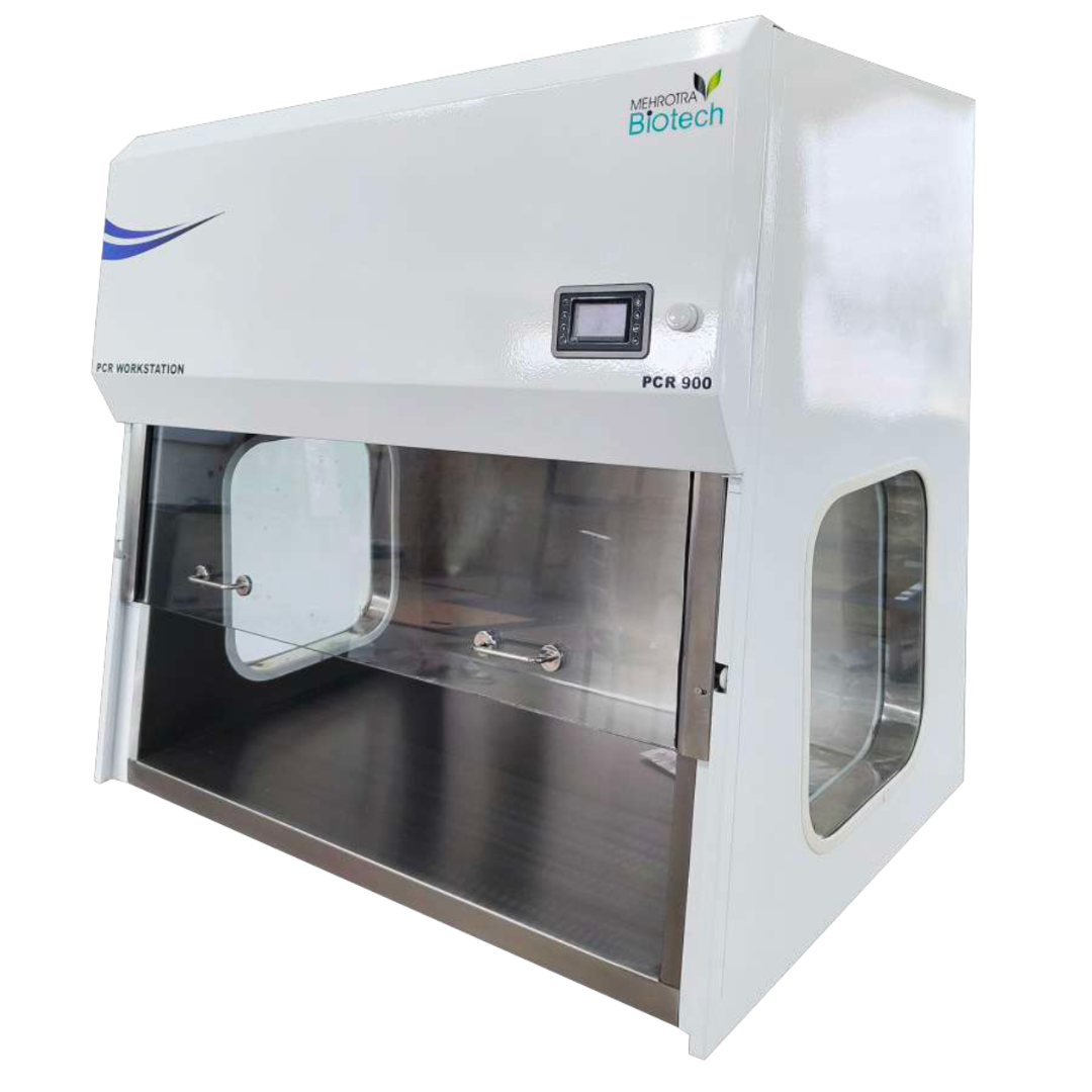 Advanced bench-top PCR cabinet providing aseptic conditions for a variety of biomedical and biochemical procedures. The large capacity stainless steel UV cabinet with additional space for equipment and accessories allows more comfortable and convenient working in PCR working. With dual UV lamp protection.